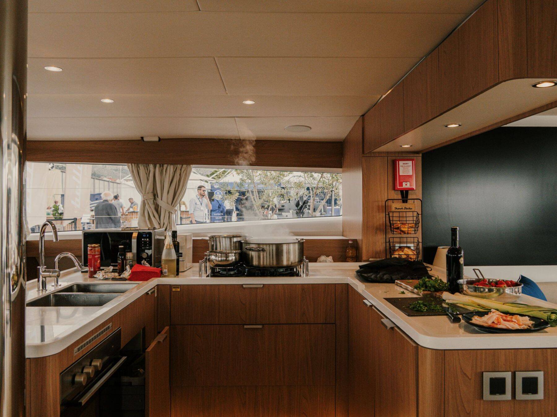 One of the most memorable daytime events took place on the Bali 5.2 and Bali 5.8 models. Two professional chefs prepared specialties directly in the onboard galley, demonstrating how the open space concept works in practice. Guests had the chance to experience an atmosphere where the kitchen, salon and cockpit merge into one seamless living area, which is one of the key characteristics of the Bali lifestyle on the water.