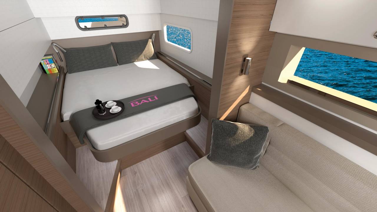 The spacious saloon is Bali catamarans trademark, and Bali 4.2 is no exception, with enough seating area around the table with a bar. Design of this catamaran offers various layout options and a vast selection of upscale materials, so it is customizable to the last detail! In the heart of Bali catamarans, philosophy is comfort and space, also visible in the customizable en-suite cabins.