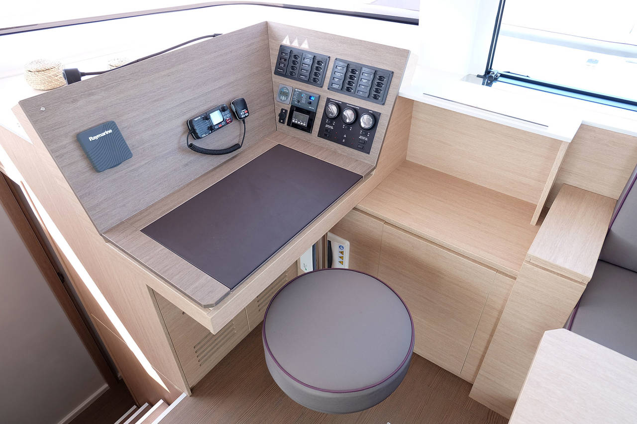Pack Excellence (220V shore power plug for electrical circuit with outlet in cabins, saloon & galley, Multiplex electrical panel with touch screen, Combined battery charger 70 Amp - Inverter 12/220v,2000va, Battery controller, American fridge freezer (615 L) with chilled water , ice maker and dedicated inverter, 12 V outlets (1 per cabin, 1 at chart table and 1 in forward cockpit ), LED navigation lights, Cockpit extension by tilting platform, Upgraded sound insulation for engine room, Davits for dinghy, SS pulpits with Polywood seats, Hot & Cold cockpit shower, Electrical 1500 W windlass, Solent furler, 2 extra house batteries of 110 amp / 12V,Indirect lighting in saloon and cabins , Forward cockpit and transom courtesy lighting, Extra Fuel tank of 400lts for a total capacity of 800lts, Extra Fresh water tank of 400lts for a total capacity of 800lts, Beige vinyl upholstery for forward cockpit, Beige vinyl upholstery for aft cockpit and meridian, Beige vinyl upholstery for helmstation seat or flybridge bench, Fully retractable window between salon and forward cockpit, Fully retractable window between galley and aft-cockpit, Extra ventilation by opening porthole in each cabin, Gas struts on 5 cokpit lockers and engines hatches, Mainsail electrical winch, Automatic reef on first and second reef)