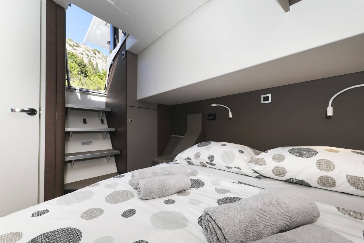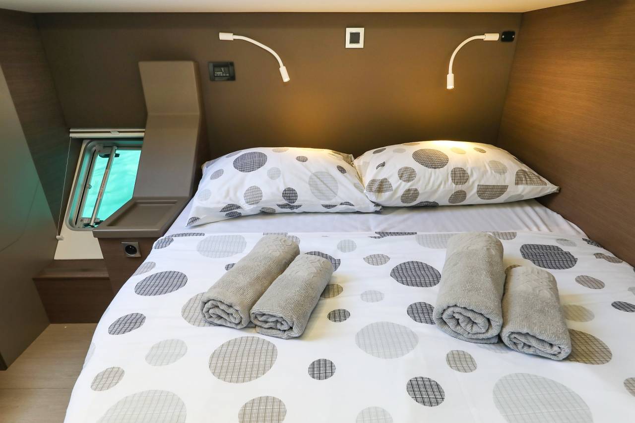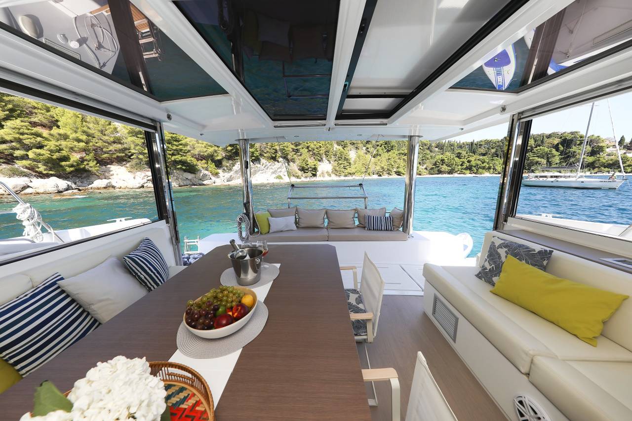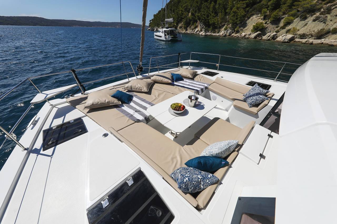 To date, the BALI 4.8 Open Space is the only catamaran of its size to offer a layout configuration in 6 cabins and 6 bathrooms. Never seen before, if the two forepeaks are fitted out and adding the bench seats in the saloon, no less than 16 adults could sleep inside, not counting the outdoor spaces, benches and sunbathing area, forward, aft and on the fly bridge that can comfortably accommodate lovers of stargazing...