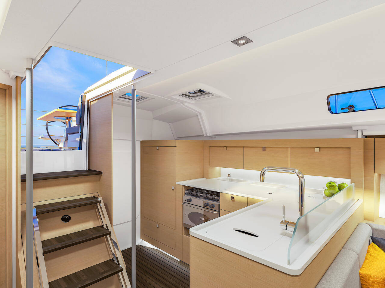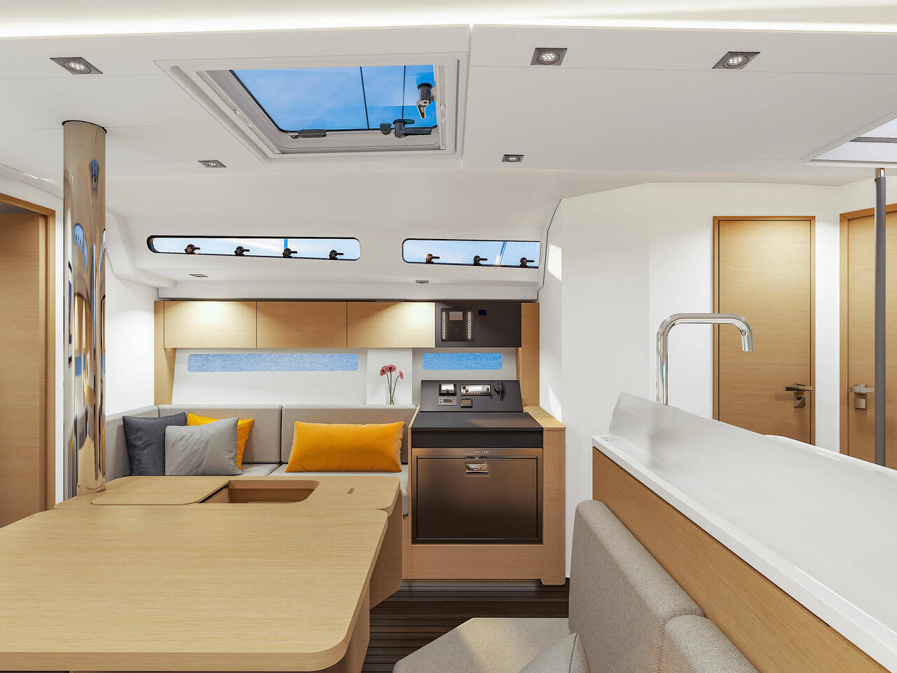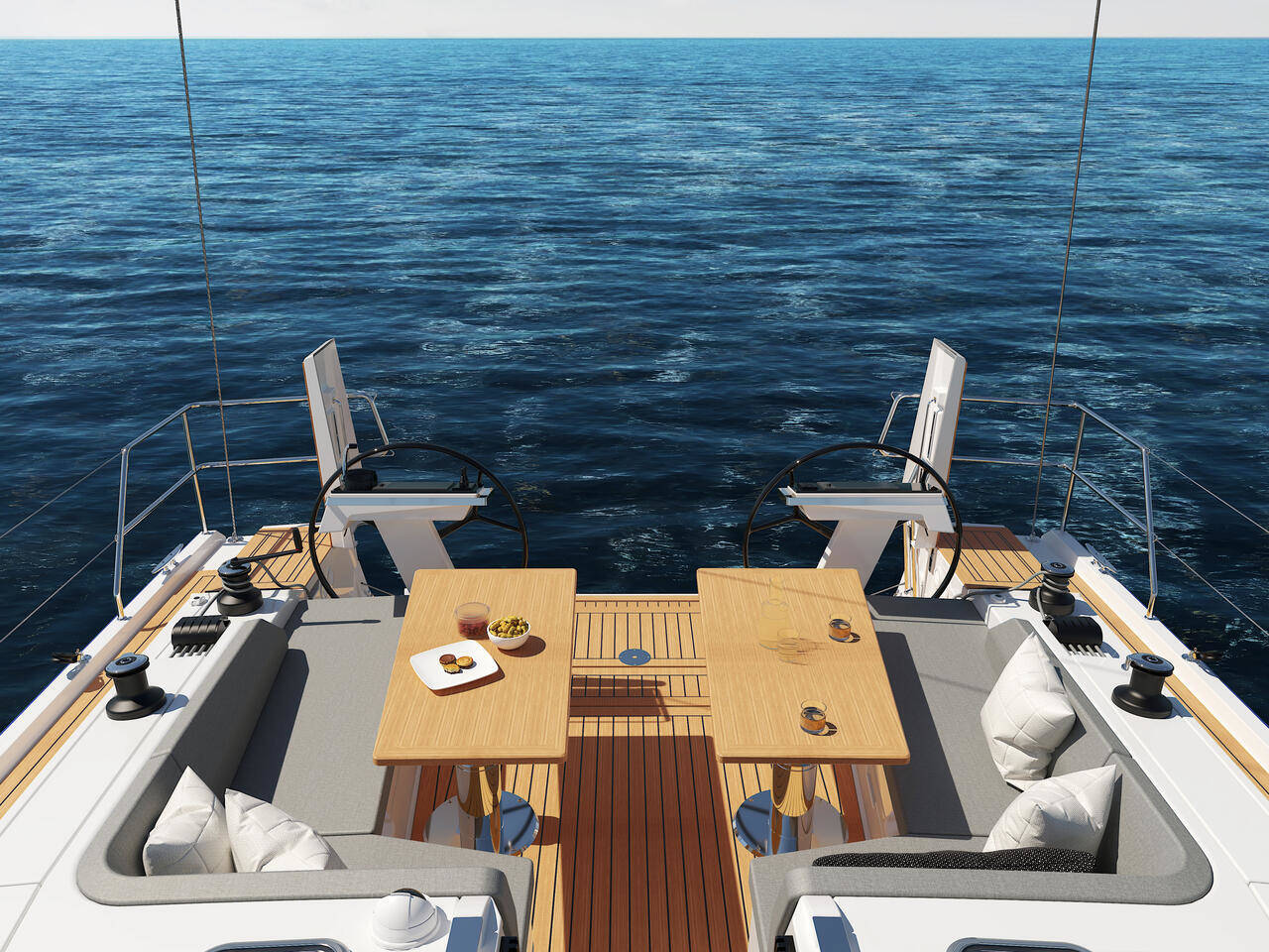 Step into the future with the Hanse 410, where fashionable sailing harmonizes with eco-conscious values. The optimized hull design of this 41-foot yacht, featuring chines at the bow and stern, ensures a sleek waterline, providing the Hanse-typical uncompromising performance and ease while sailing. Three expansive cabins and a welcoming salon, offer a genuine sanctuary with abundant space for relaxation. Cook in style on the waves! Experience a splash of gourmet in our galley, featuring ample storage and a roomy workspace. The Hanse 410 redefines elegance on the seas. With its class-first dual cockpit tables, there's an abundance of space and luxury seating, amplifying the sheer joy of a wind-driven journey.