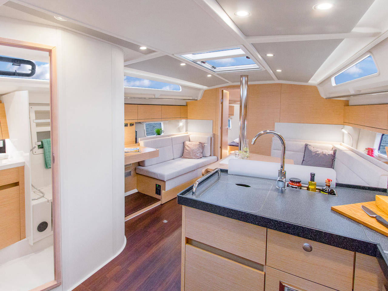 The new Hanse 418 exudes an unmistakable, strong personality that makes every day you spend on the water a true highlight. It‘s clear, fast lines are already the talk of an amazed sailing scene. Thanks to the optimised hydrodynamic flow conditions, the straight stem and extra-long waterline, this Hanse yacht is perfect for a genuine sailing experience: fast, safe and comfortable gliding through the water. With all this, the Hanse 418 is setting a new standard in its class. Come aboard and revel in its beauty!
