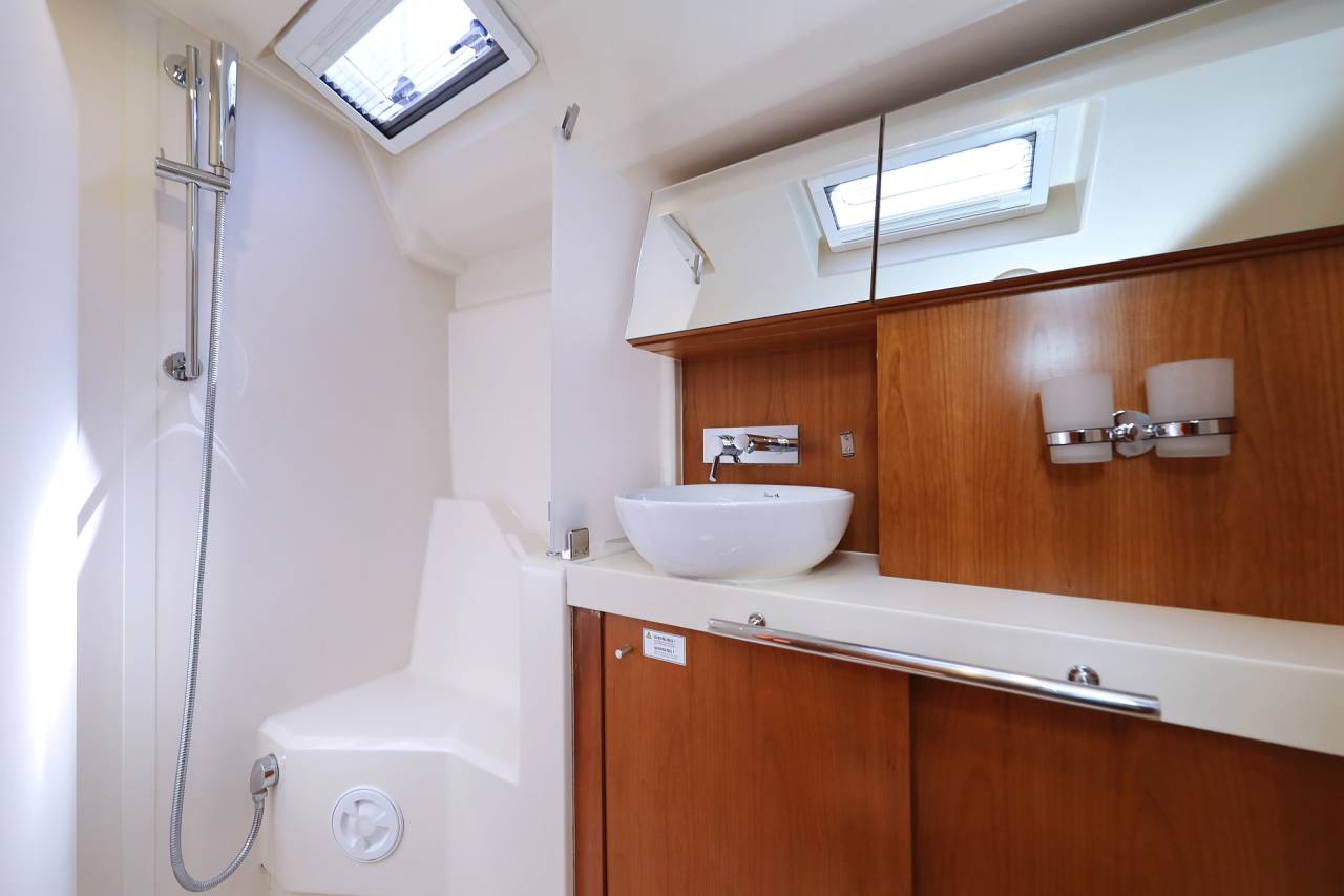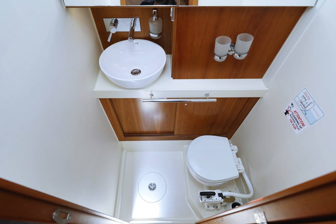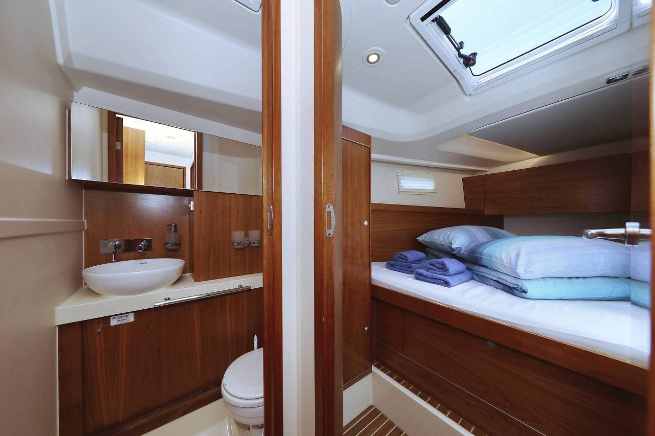 4 cabins, 4 heads plus skippers cabin with toilet and sink