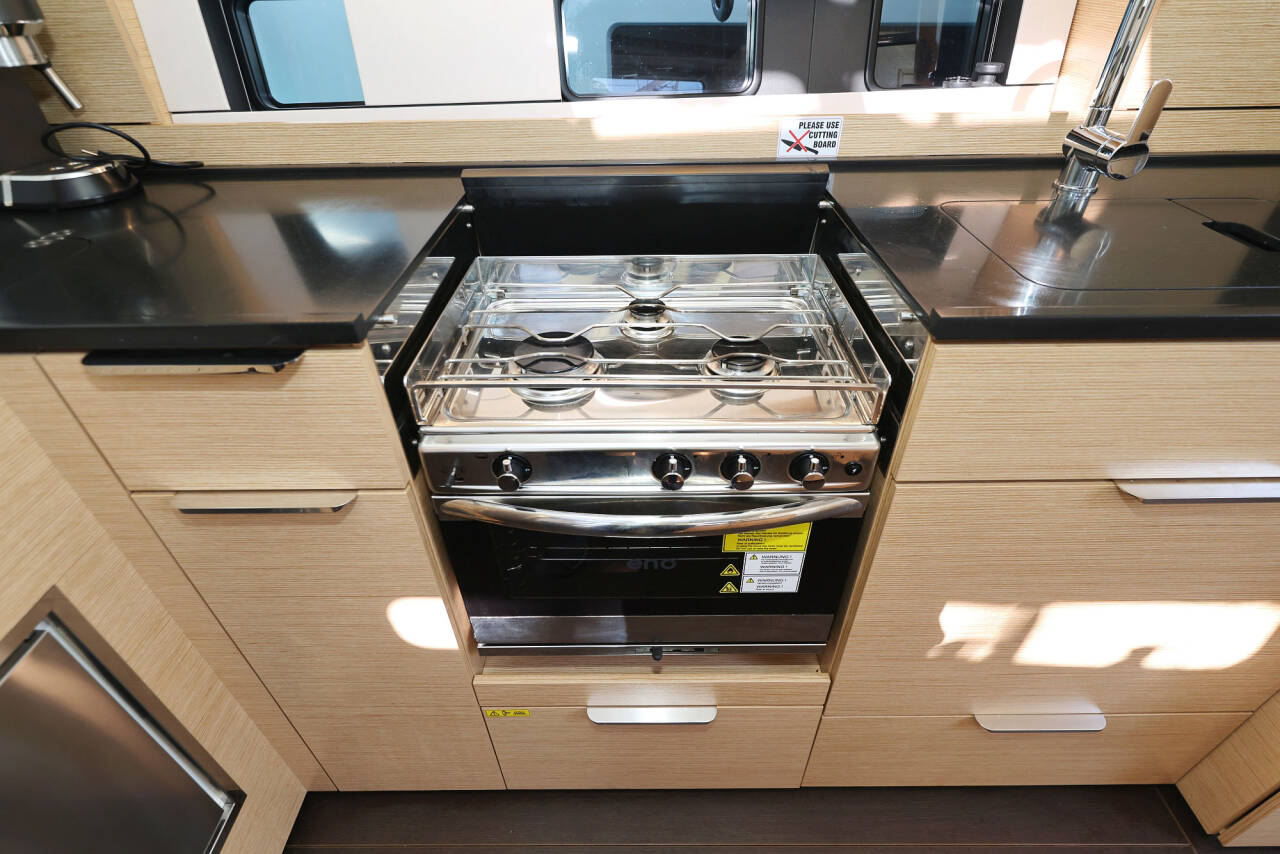 Worktop and sink of the galley in Marine Mineral Stone (colour selection)