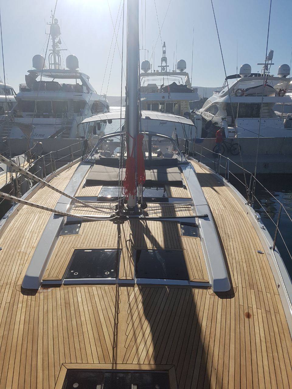 Cruising Package(Cockpit bootom teak, Anchor delta 40kg with chain, backstay tensioner hydraulic, Bow thruster 24 retractable incl battery, upgraded battery set, Inverter/Charger 12/2500-100AC, …… ) Comfort package(2 electrical cockpit tables convertible to sun beds, LED lights, SLS-scenario light system, Indirect light in salon / cabins, Oceanair blinds, Cockpit cushions….)