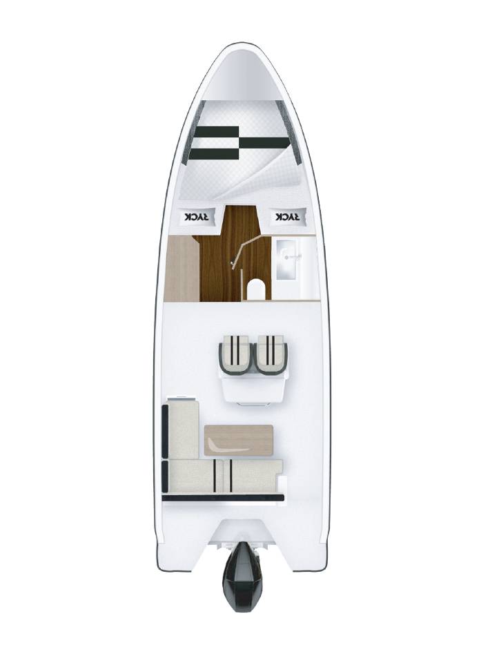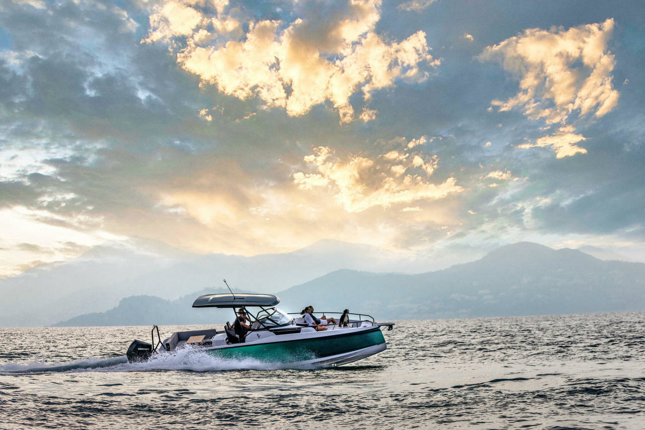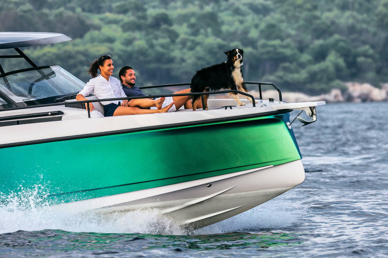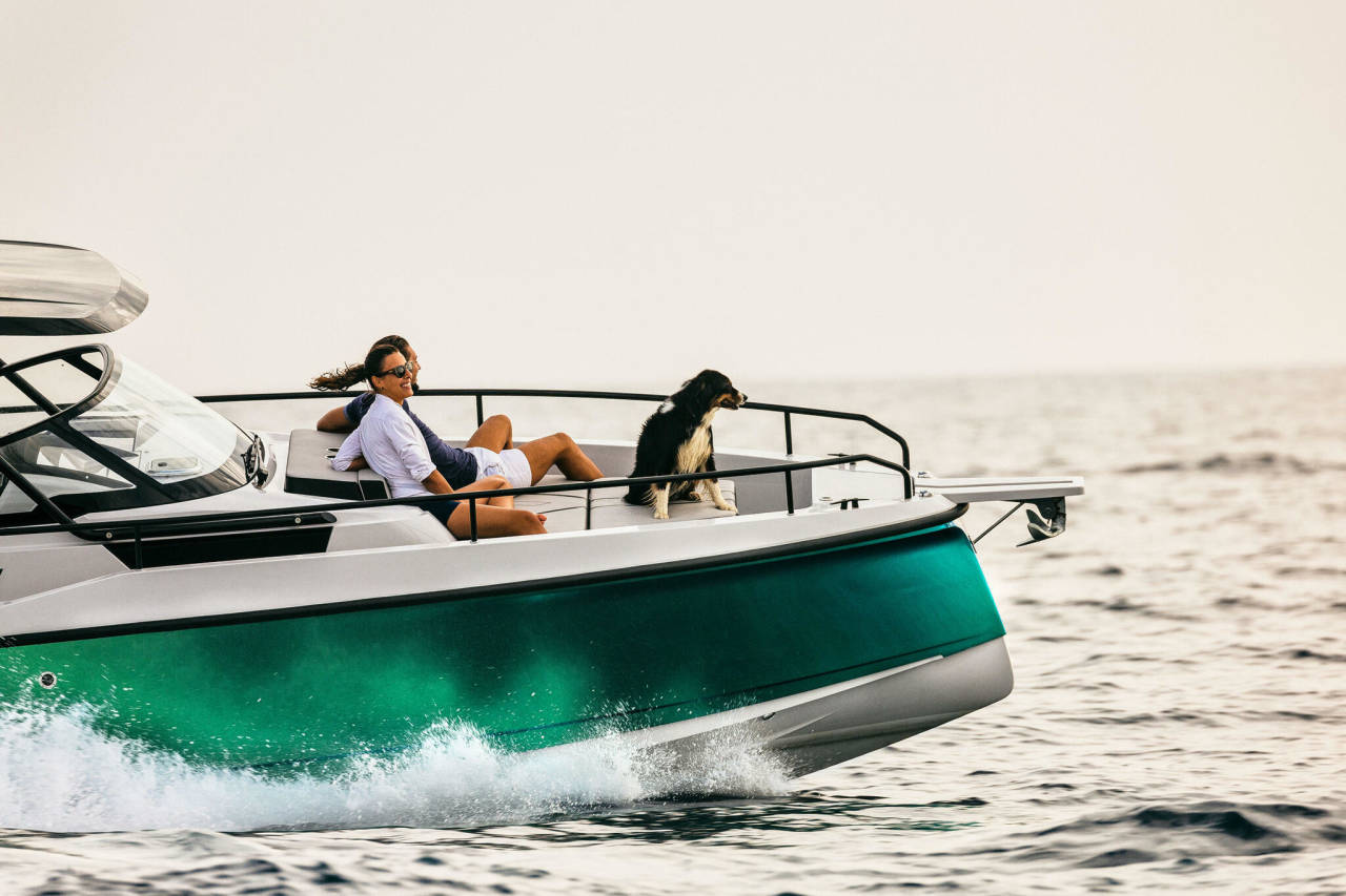 When securely nestled in a secluded anchorage, thanks to an electric winch, the RYCK 280 effortlessly transforms into a leisurely space with a cockpit lounge, sun deck, and dining table.