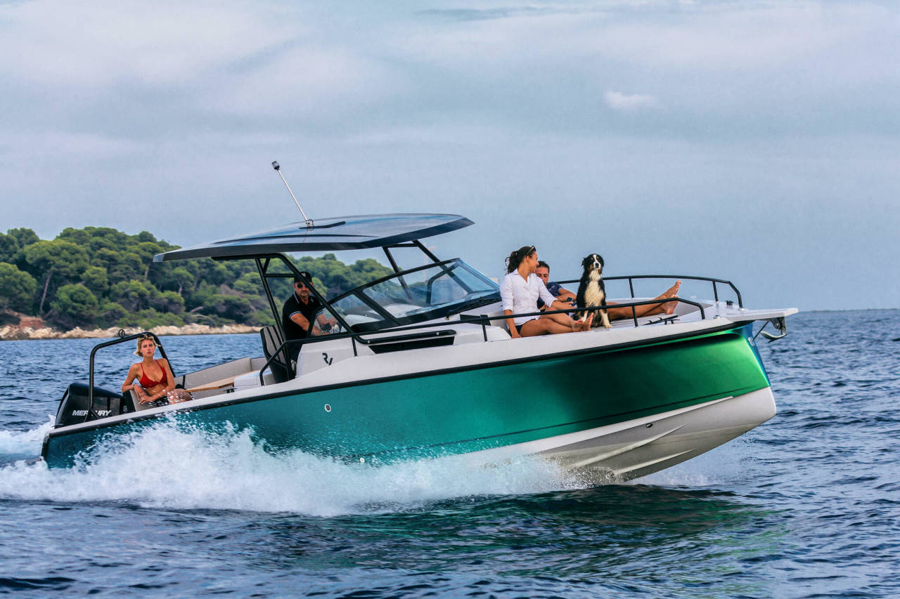 RYCK 280 is an exhilarating new series of luxury sports day boats that seamlessly blend the versatility of a RIB with the high-end amenities typically found on luxury tenders. It's a recently launched line of fast boats with a central walk-around console, adaptable to a wide range of purposes: family entertainment, high-speed cruising, day outings for adventurous water sports, or a top-tier fishing platform.