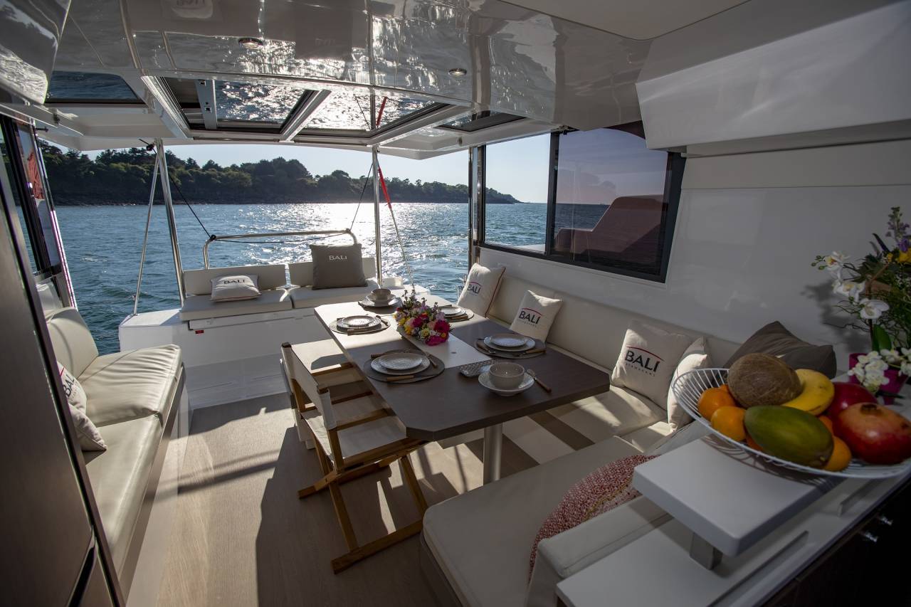 Osmišljen od strane Olivijea Poncina i dizajniran od strane Lasta Design, novi katamaran BALI Catspace kombinuje sve najnovije inovacije u krstarenju. Integralna paluba i koncept otvorenog prostora omogućavaju vam da se glatko krećete kroz različite prostore, od zadnje platforme sa klupom do prednjeg kokpita sa salonom i prostorom za sunčanje.