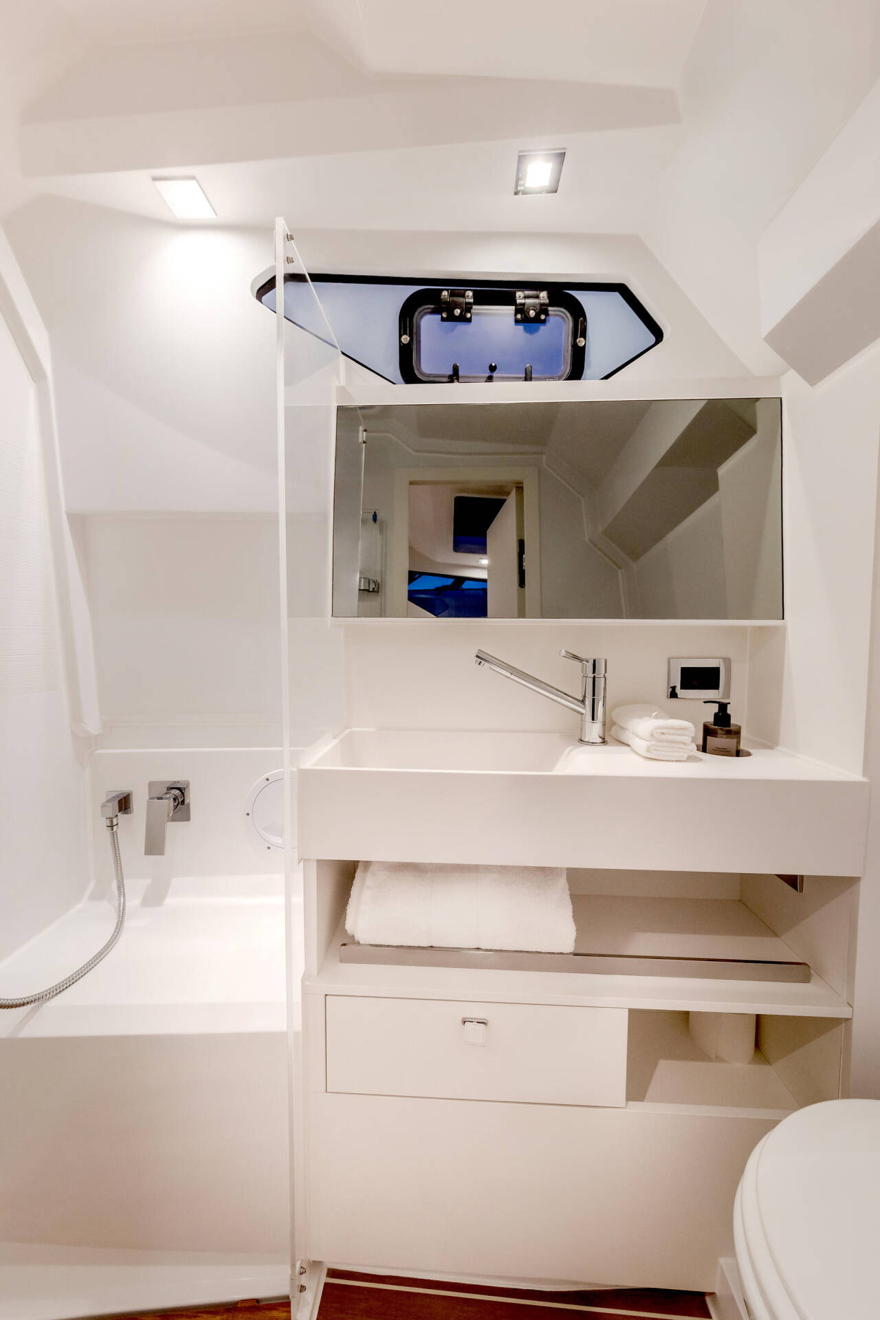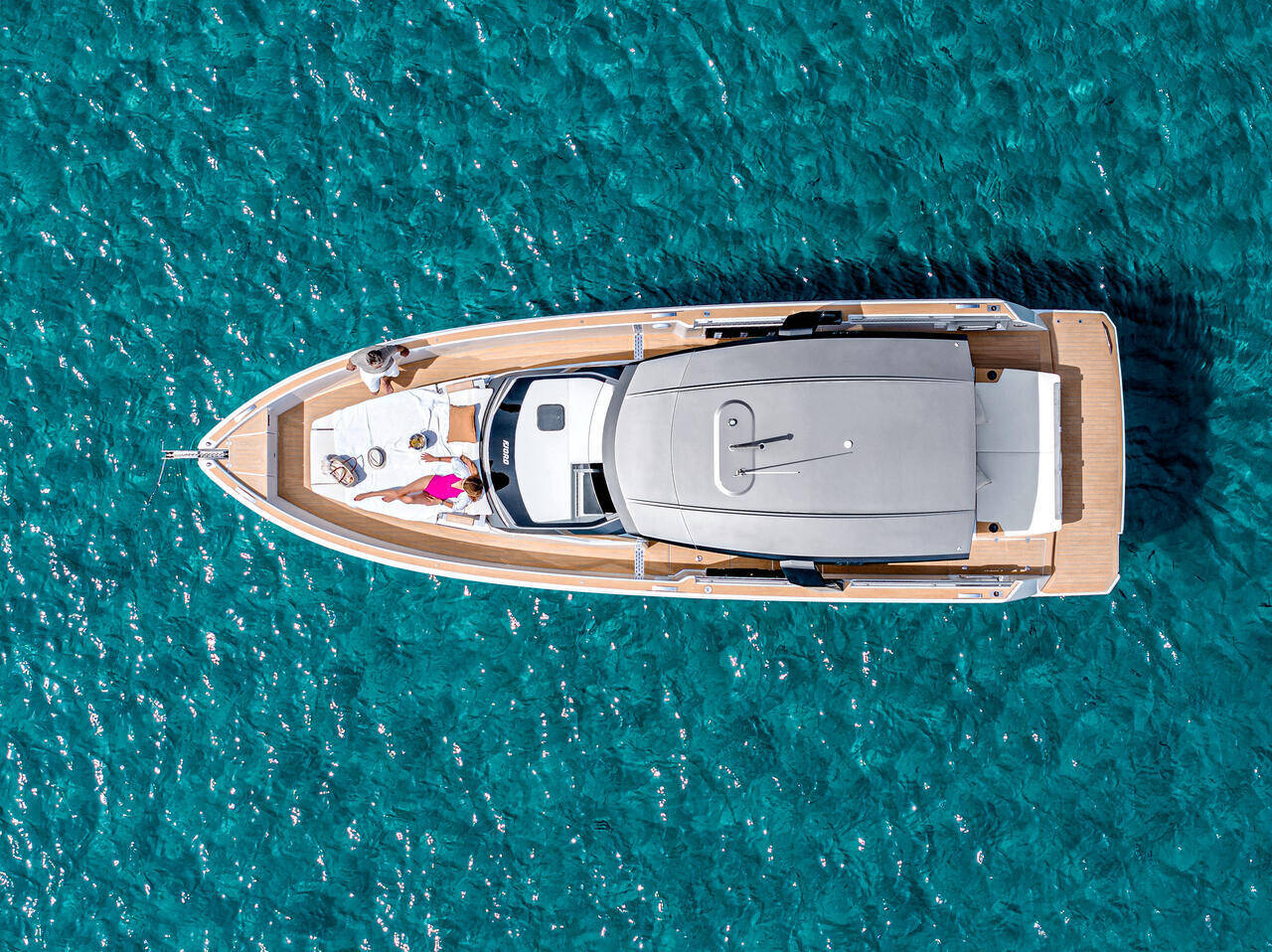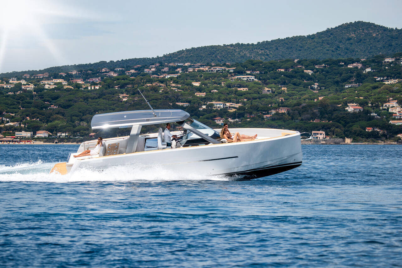 - Inovativna navigacija i kontrola: Jahta je opremljena modernom navigacionom tehnologijom i upravljanjem pomoću džojstika, što čini rukovanje glatkim i intuitivnim, čak i pri velikim brzinama. Dizajn T-topa, vodeći u klasi, nudi zaštitu i udobnost.