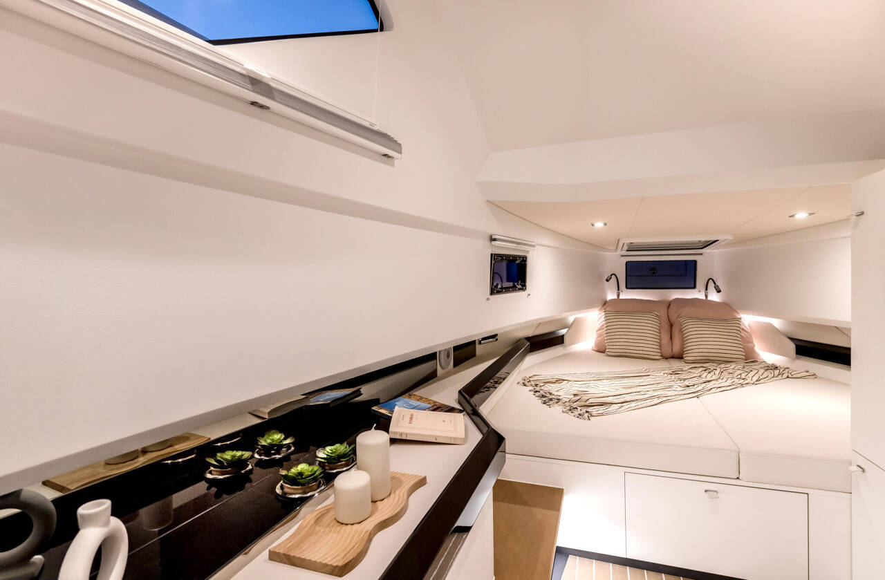 - Poboljšan unutrašnji prostor: Ispod palube, prostor je ingeniozno iskorišćen za maksimalnu funkcionalnost, predstavljajući značajno poboljšanje u odnosu na prethodni model FJORD 38.