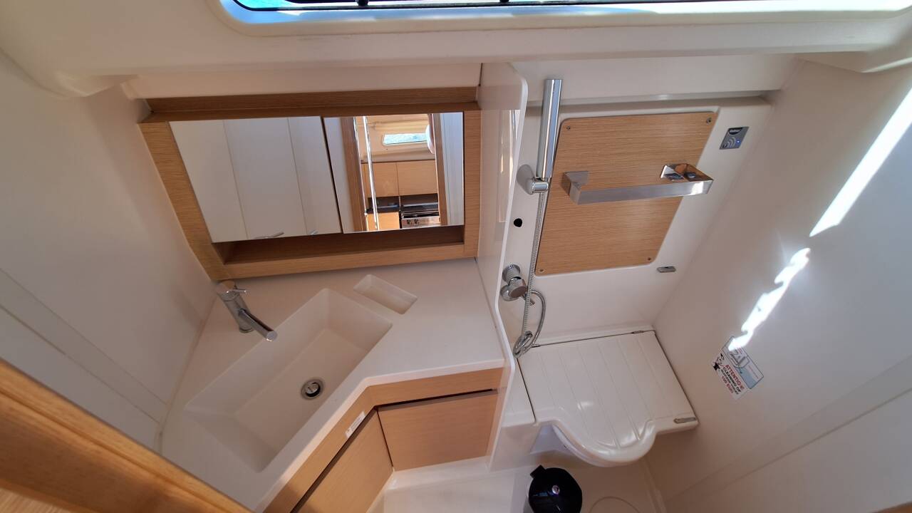 B2: Saloon with short L-galley, dining area on stb and sofa on port - separate head with shower stall on port (only with XL3002)