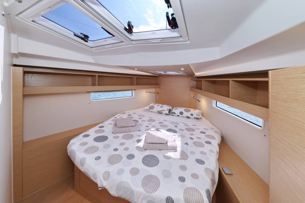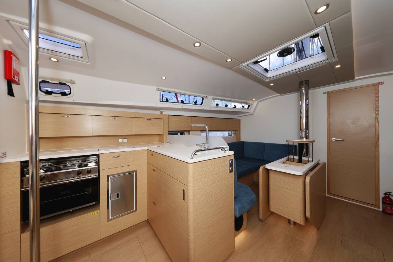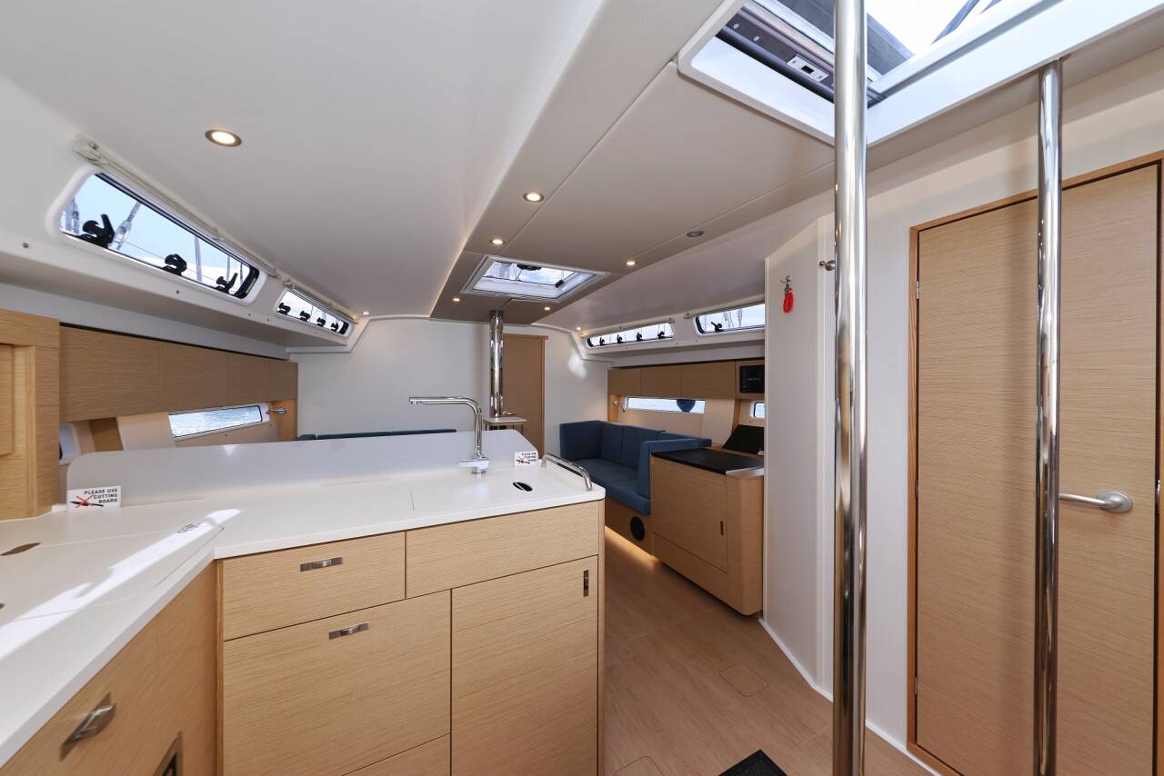 Visok, sportski jarbol i takelaža obezbeđuju optimizovan plan jedara, pa je jahta okretna i veoma poslušna u svim uslovima vetra. Uz integrisani Hanse Easy Sailing sistem, podešavanje jedara i manevrisanje su intuitivni i jednostavni, čak i kada jedrite sa smanjenom posadom. Život na palubi odvija se oko prostranog kokpita, opremljenog dvostrukim stolovima koji se lako pretvaraju u prostrana sunčališta.