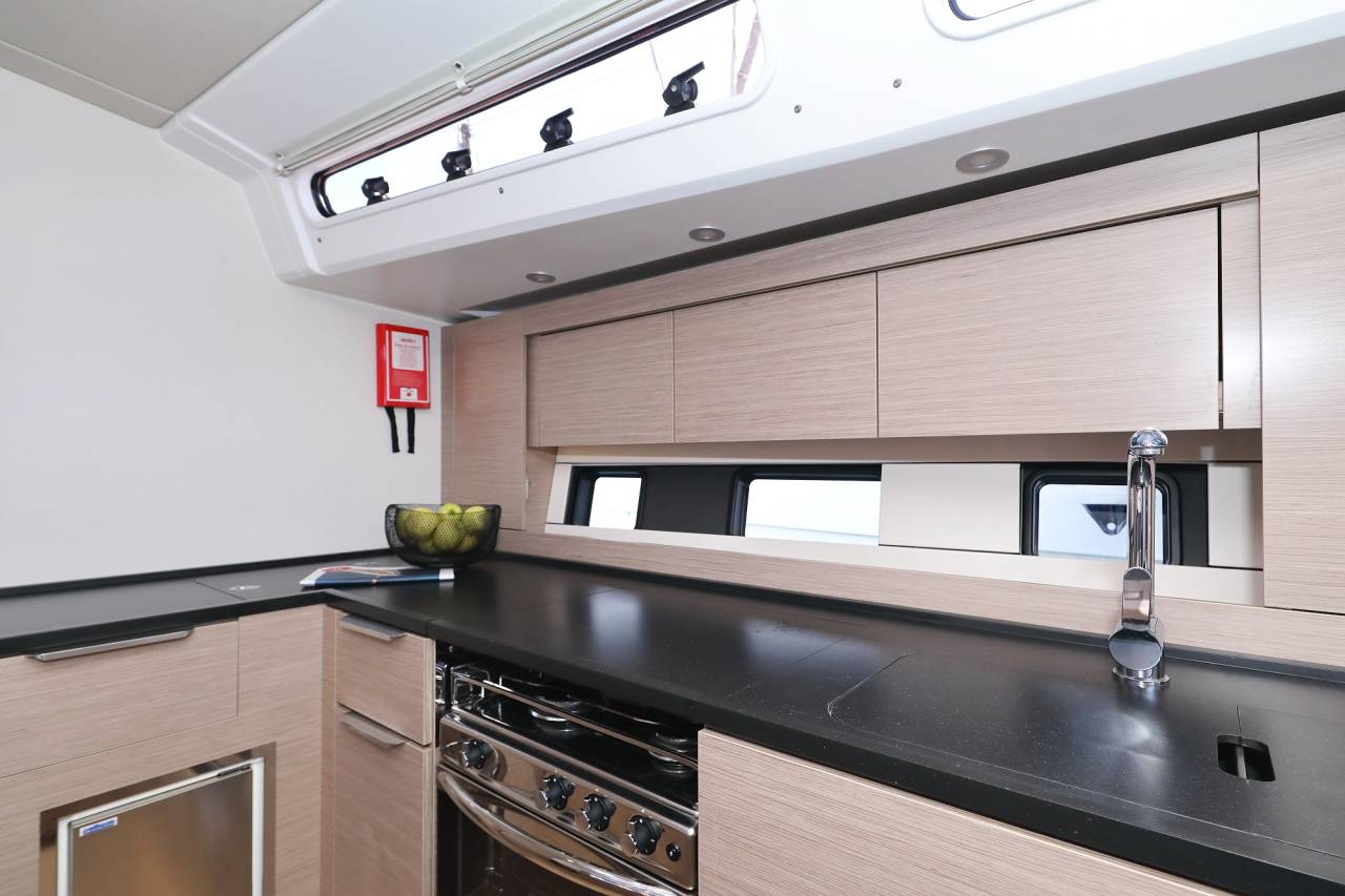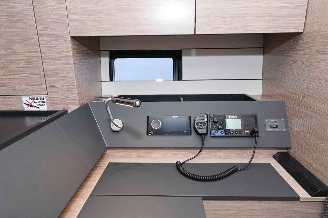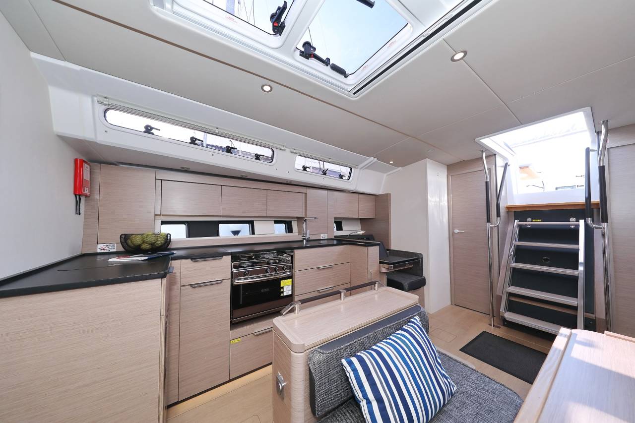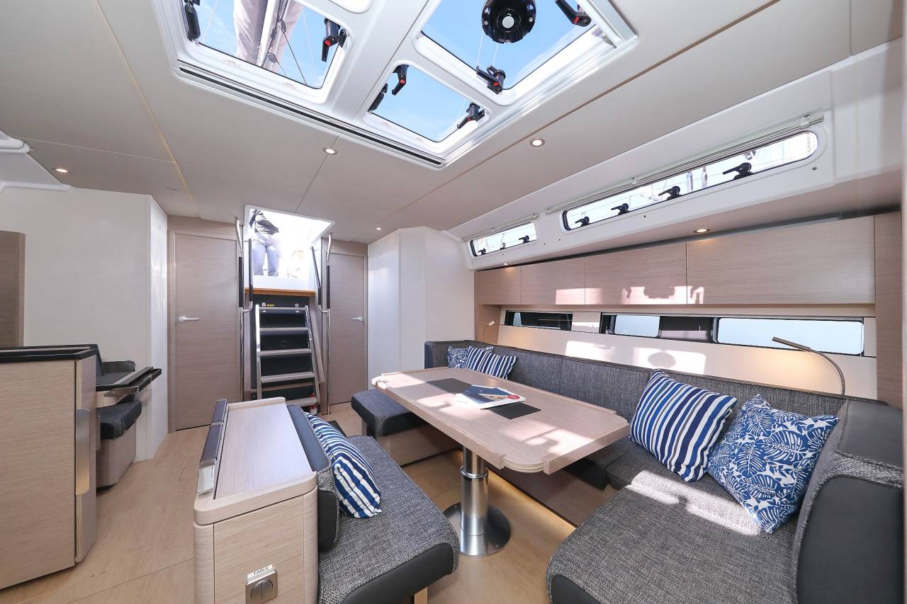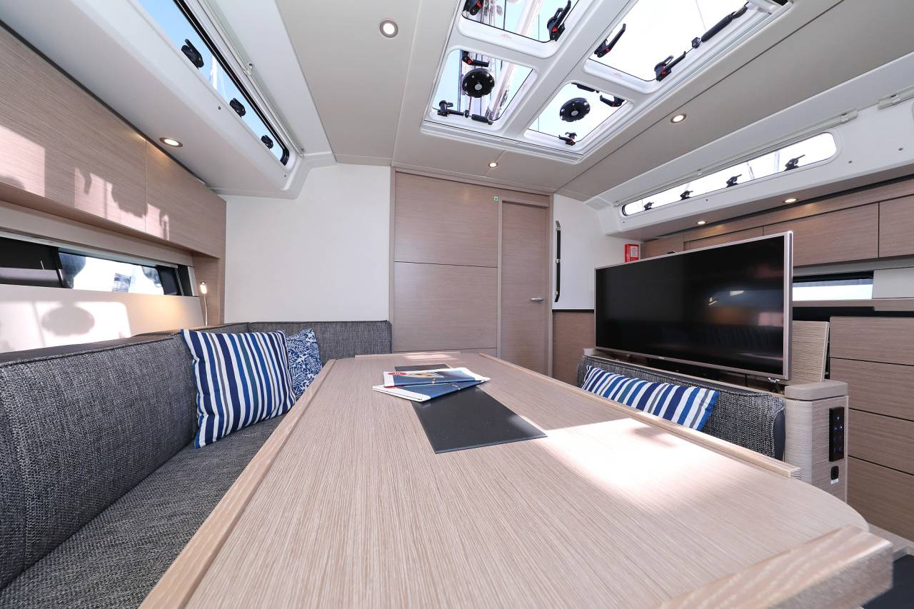 B2: Saloon with full functional U-galley and chart table on stb and dining area with bar on port
