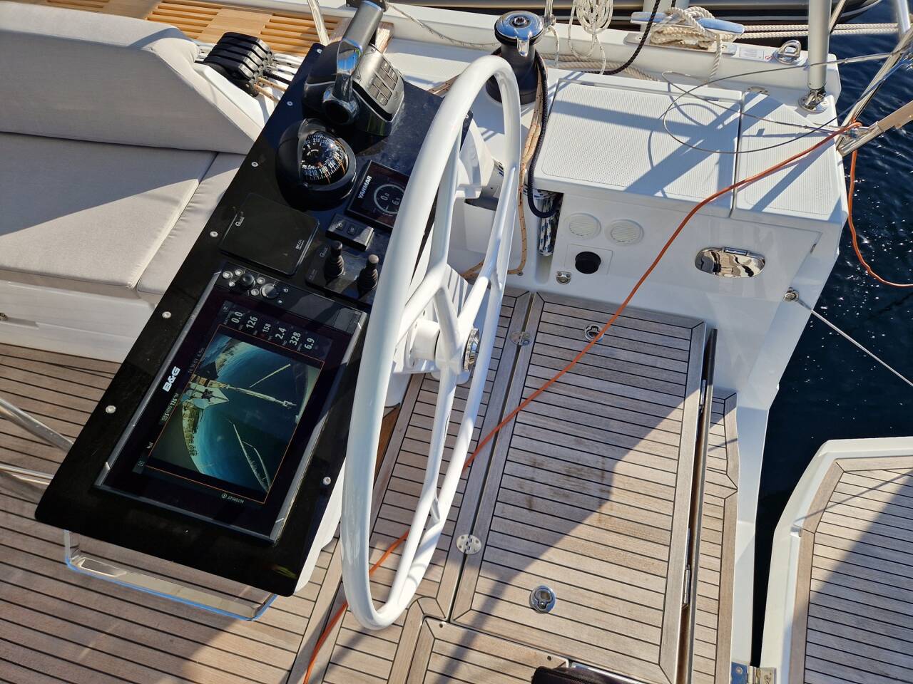 B&G Zeus³S 12" chart plotter at helm station, stb