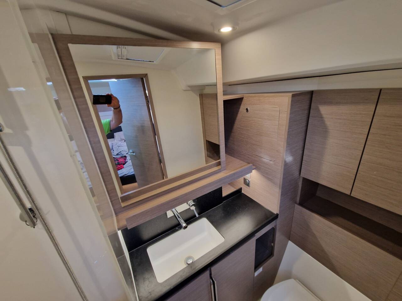 Shower unit in cockpit on port, warm-/coldwater