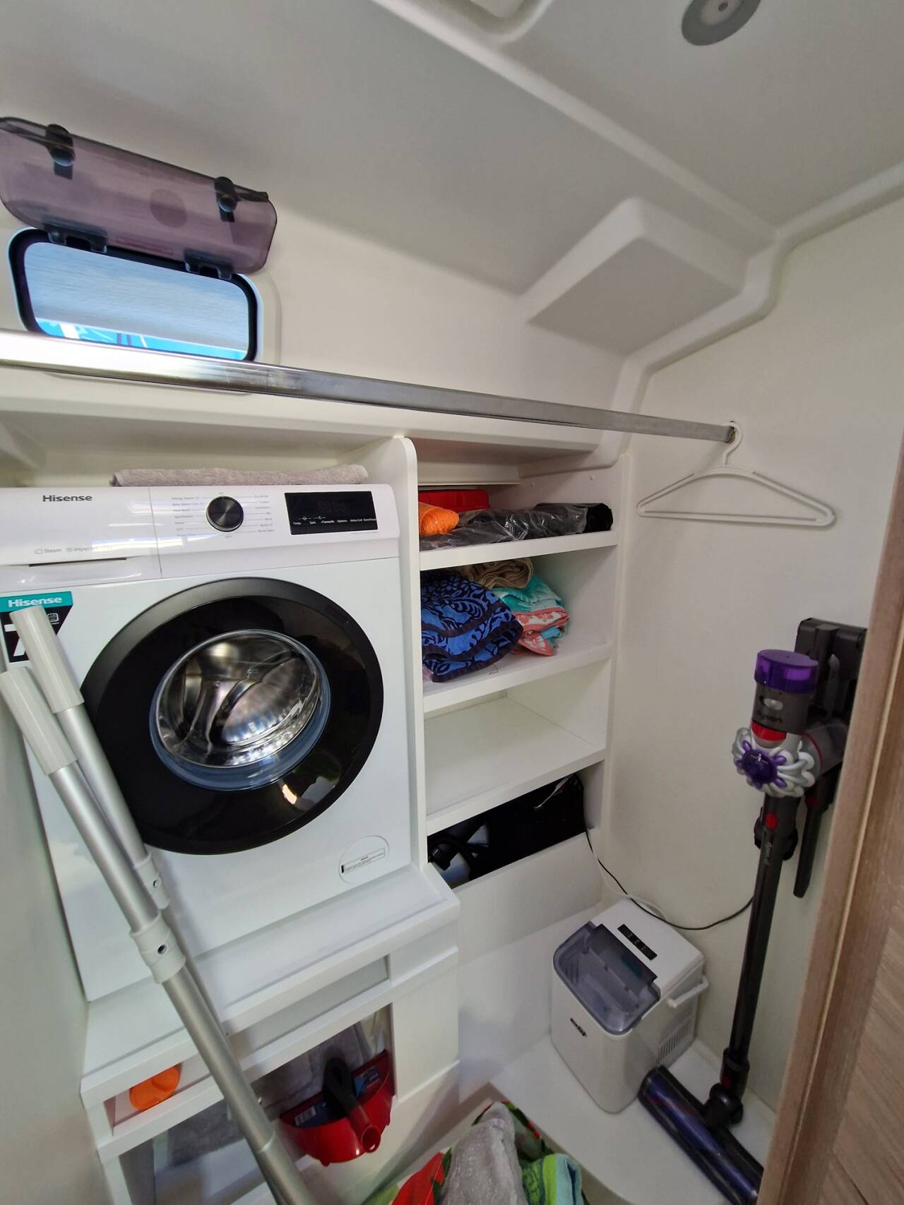 Washing machine with dryer function, front opening, in utility room - cabin layout C1