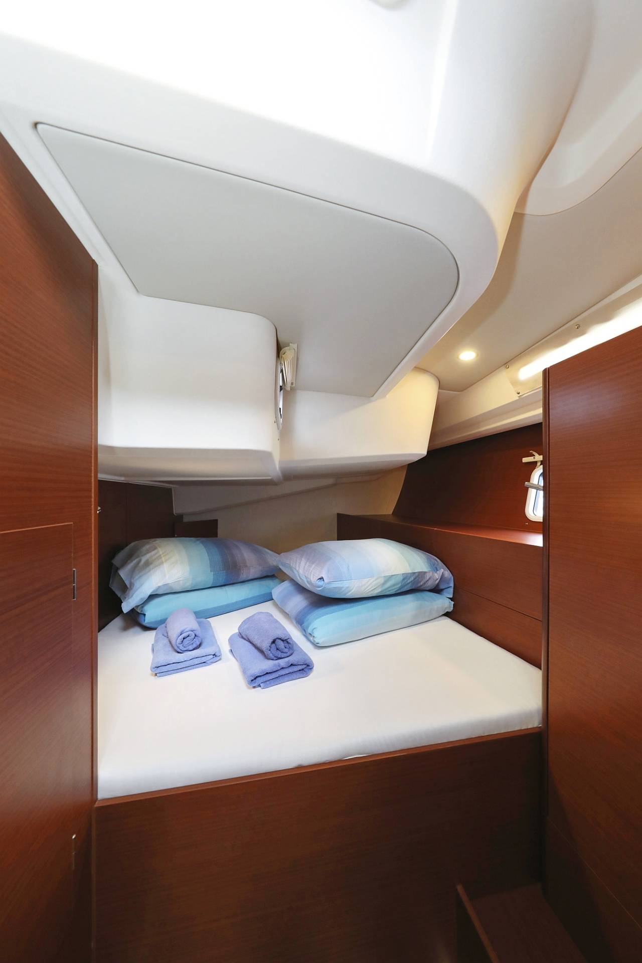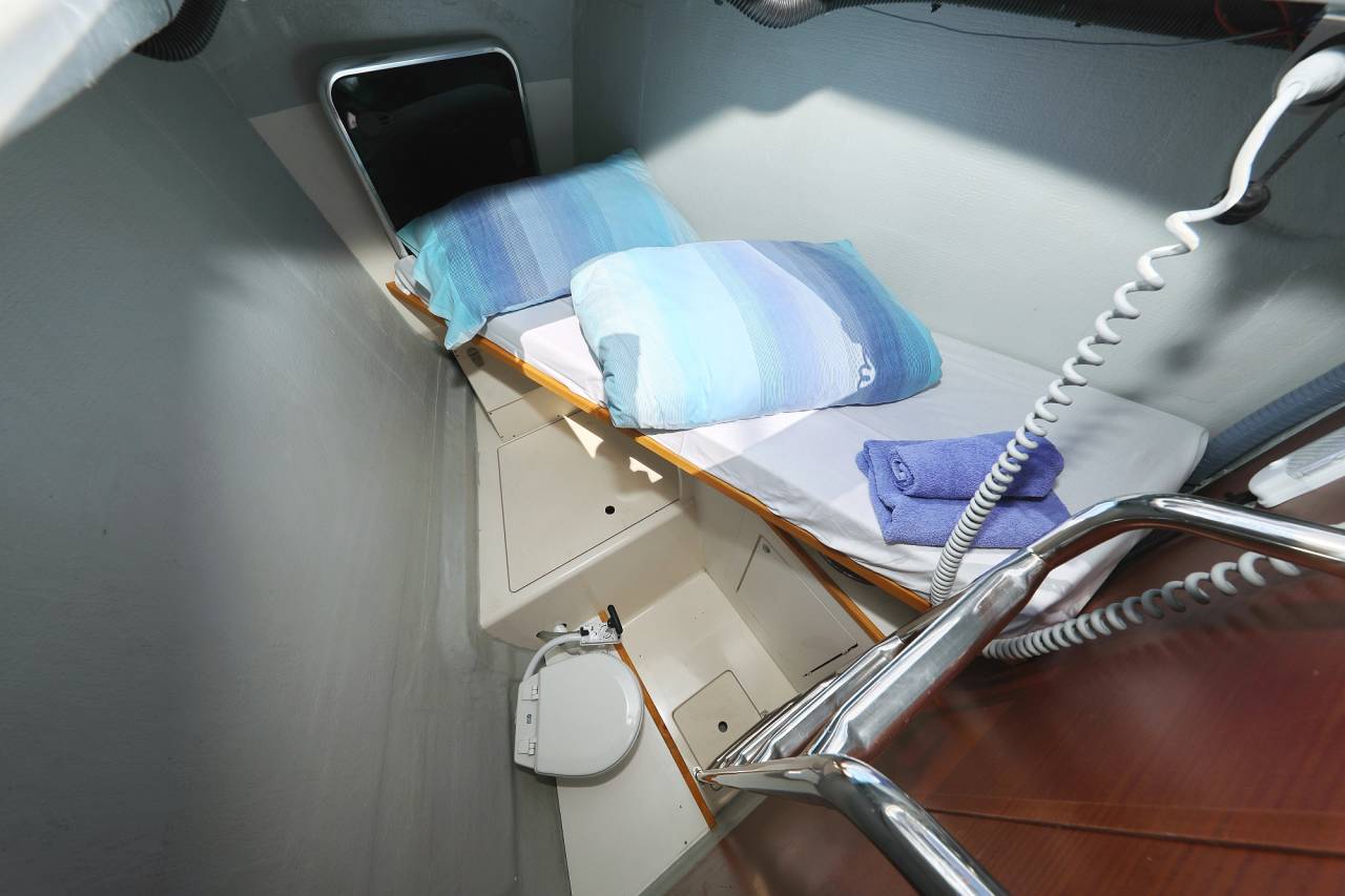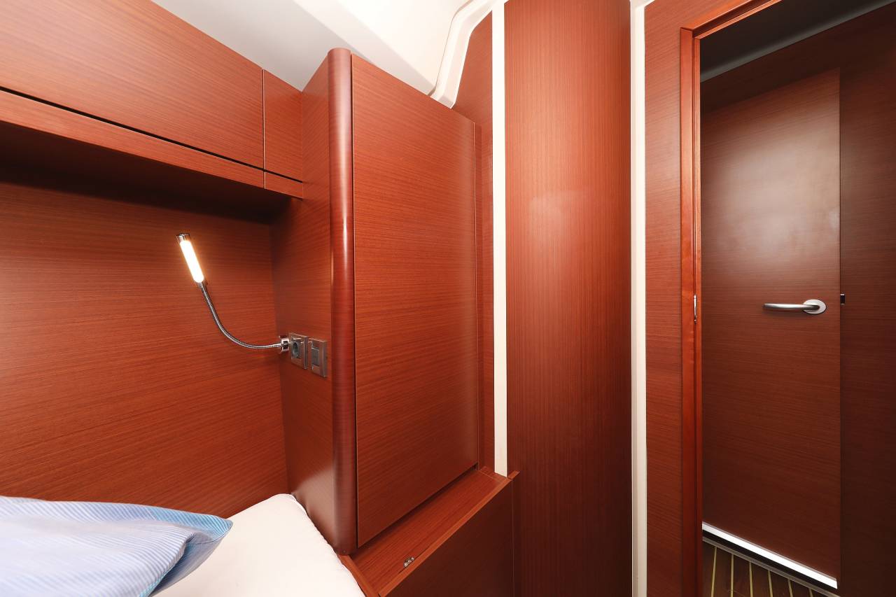 - B3: 2 fwd cabins with double berth, storage space and separate head - convertible by a removable bulkhead into a single cabin