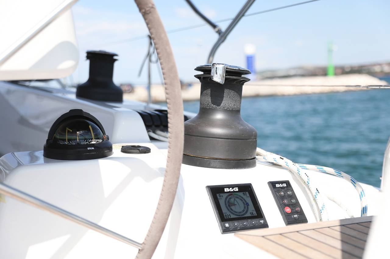 - 2 B&G Triton² multifunction displays in cockpit, incl. transducer (wind/speed/depth/temperature)