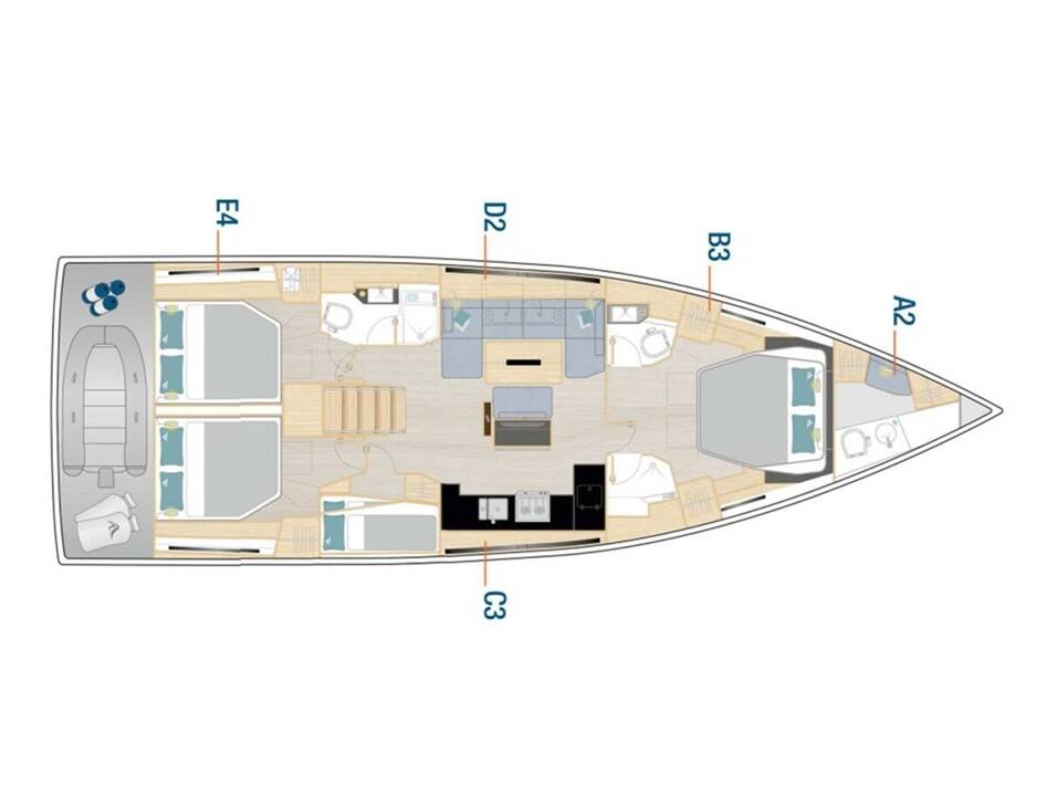 Ovaj Hanse 510 dolazi opremljen sistemom rolanja glavnog jedra u jarbol, radi vrhunskog komfora pri jedrenju i jednostavnog rukovanja. Raspored predviđa 4 kabine plus skipersku kabinu, među kojima je i prostrana vlasnička kabina. Pametno odabrane, visokokvalitetne opcije u celom plovilu donose izuzetan osećaj prostranosti i luksuza u svakom delu.