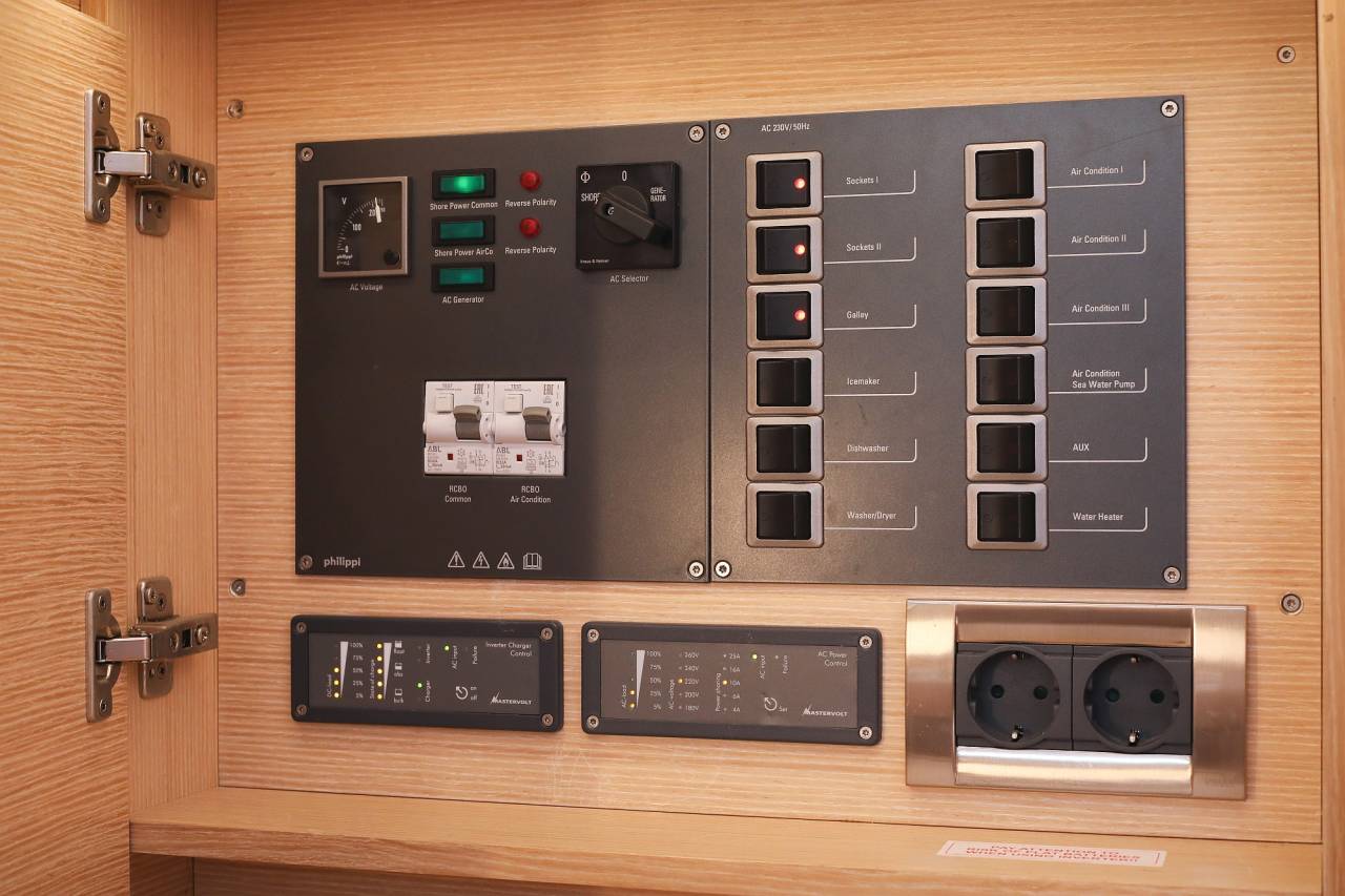 - Inverter/charger, 12 V / 2200 W - 100 A, incl. AC panel