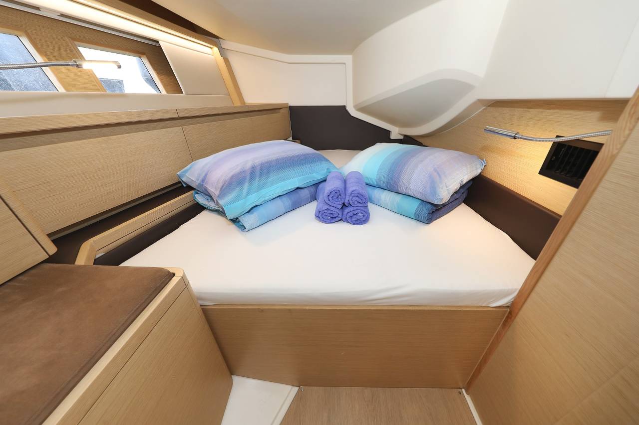 - LED overhead lights in saloon and cabins, dimmable