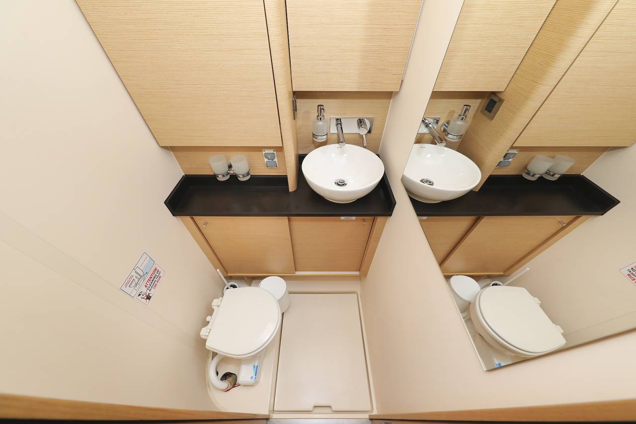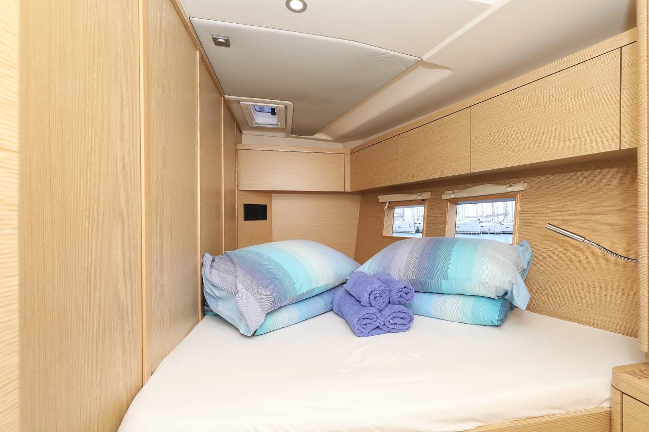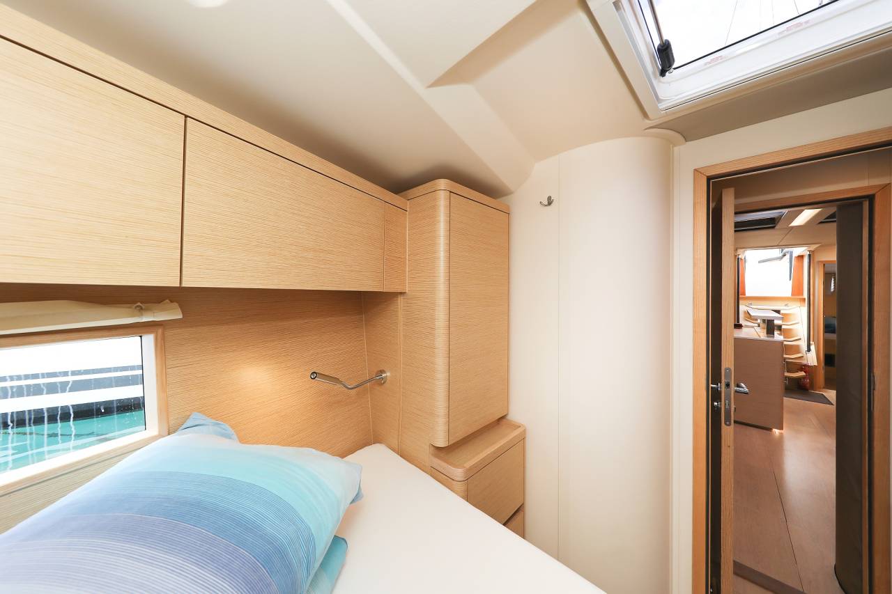 4 cabins, 4 heads + skippers cabin
