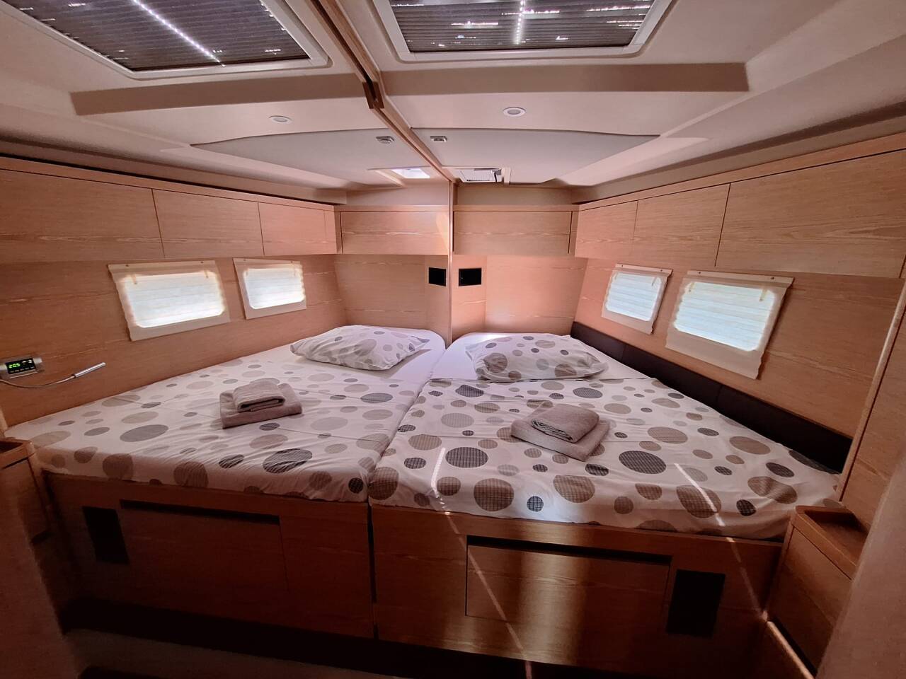 Prelepa Hanse 588 sa rasporedom od 5 kabina i dugom listom opcija. Prednje dve kabine su modularne i mogu se spojiti u jednu, vlasničku kabinu. Ova jahta je potpuno opremljena za čarter i dostupna za preuzimanje u oktobru 2025.